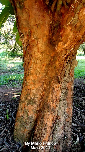 TRONCO: Seu caule é reto, de coloração pardo claro, tem grande copa. A madeira tem cerne bem compacto e resistente, utilizado para construção naval.